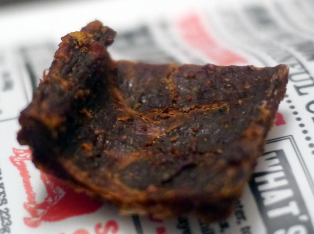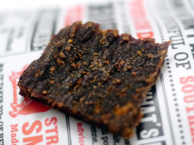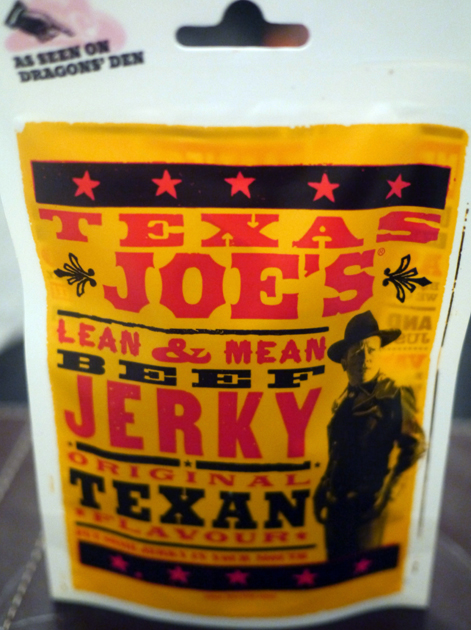Finally, no review of Texas Joe’s would be complete without a mention of his beef jerky – the product that the oddly-dressed Texan touted on an episode of Dragon’s Den. Compared to other jerkys I’ve had, this one wasn’t excessively sweet, too tough or embalmed in a ridiculous and artificial ‘teriyaki’ flavour. It was a bit chewy in places, lightly sweet and a bit salty in a soy sauce-like way with an occasional suggestion of spice. As a carnivorous equivalent to popcorn, it’s a pleasing one.
