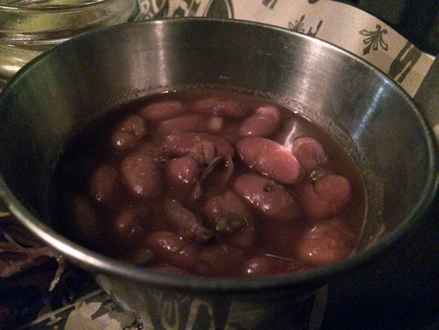 The residency has a bigger menu than the original market stall and the Sampler allows you to, well, sample a large swath all in one sitting. The ‘link’ sausage was very beefy and coarsely textured, yet also surprisingly light – it’s easily tasty enough to give many German sausages a good run for their money. The coleslaw was unremarkable though and a mere half slice of pickle seemed insufficient given the amount of meat to be devoured. Although the beans were a little too watery and soft, they were surprisingly piquant.