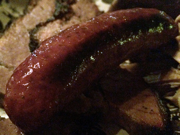 Given the size of the Sampler there’s no need for side dishes, a gut-saving revelation I wish I had known before ordering the jalapeno cornbread. It was light, fluffy and surprisingly fruity, although totally lacking in heat as well as the nutty sweetness I normally associate with cornbread.