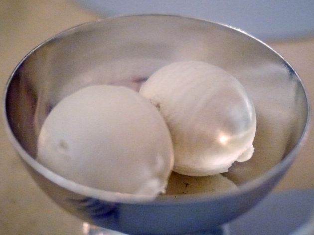 The Euro Hedgie skipped dessert, but I opted for the sugar-dusted, slightly chewy English-style doughnut. At its centre was a sweet, slightly bitter molten chocolate filling. It was all pleasing enough in a Greggs sort of way, but the real highlight for me was the tacked on almond sorbet. It wasn’t too icy so it almost resembled an ice cream and proved to be a good palate cleanser, while the bold flavour of almonds was not only unmistakable but also very satisfying.