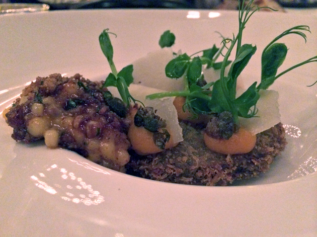 If you’re expecting a chunk of baby sheep to show up in the crispy lamb breast starter, then you’ll be disappointed. If you’re not begging for more after the last mouthful, then you’re an unmitigated idiot. Although the patty-esque slab of meat was rather bitty, the crumb coating was delightfully crispy. It went exceedingly well with the sweet, nutty and fluffy topping of butternut and pecorino cheese. As if that wasn’t addictively moreish enough, a saucepan of bone marrow crumble is provided for you to spoon on top yourself – the crusty layers of gelatinous globules were the perfect finishing touch to a warm and comforting dish full of delightfully complimentary textures.