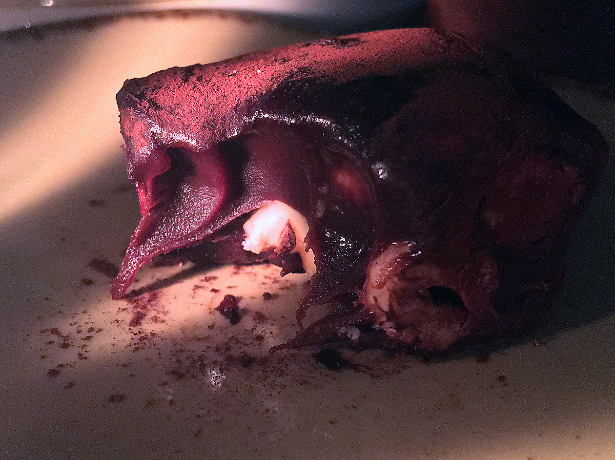 Duck breast cleaved in two was dense and moist with a thin layer of fat underneath the skin. The beetroot sauce was unexpectedly sweet and treacly, complimenting the hearty poultry in a duck a l’orangey kinda way.