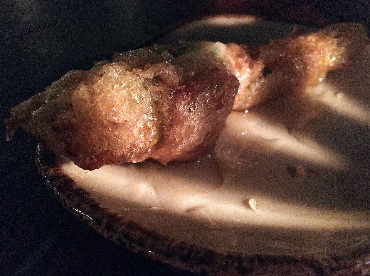 Octopus and chorizo came lanced together on the same skewer. The tentacle segments weren’t springy enough, but scraped in just enough firmness to compliment the crispy slices of chorizo. The cured sausage was only mildly piquant and meaty, but its biggest flaw was the lack of enough fat. Almost any pairing of octopus and chorizo is bound to be at least somewhat pleasing, but this rendition still left me wondering about what could’ve been.