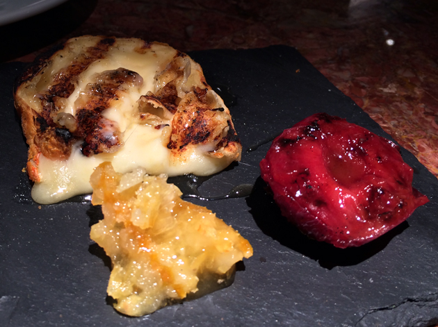 Mahon is apparently a Minorcan cow’s milk cheese and here it’s served with honey and a stewed plum. The creamy and mildly salty baked cheese bore a very superficial resemblance to halloumi, but was fluffier and had a chewy rind. It was fairly unremarkable, but the sweetness of the two accompaniments livened it up a little. The aniseed-esque flatbread was too overpowering though – the crisp Sardinian flatbread was a better way of shovelling the whole shebang into your mouth.