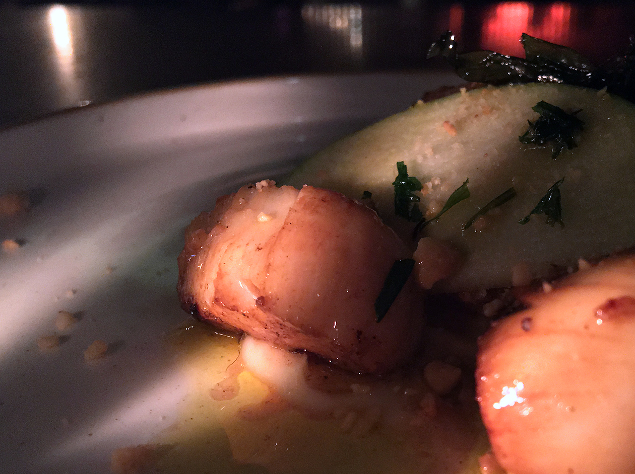 Scallops a la plancha were only modestly evocative of the sea, but they were still reasonably pleasing thanks to their respectable levels of plump chonkiness. Their tameness on the tongue made the umami sauce and sharp, sweet slices of apple all the more necessary.
