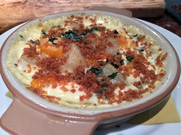 Eating out can be hard for vegetarians, but the vegetable section of Ember Yard’s menu is no mere afterthought. The vegetable gratin was easily a highlight of my meal. Tender, flavoursome chunks of celery and pumpkin were served in a sheep’s cheese and smoked ricotta sauce that was thin, yet silky and creamy without being overpowering. In my dreams, Aphrodite’s breast milk tastes like this.