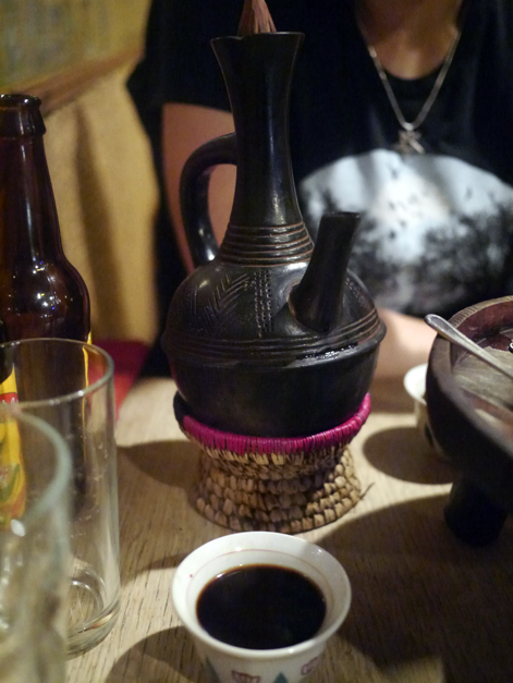 Coffee at Lalibela is a theatrical affair with the beans roasted fresh in front of you in a special ladel-like pan. The resulting brew had a weird sweaty smell, but this was largely obscured by the scents of pistachio and frankincense burned in a small ash tray-style container. The coffee itself, served black, was mildly bitter and rather anonymous but it wasn’t too acidic and had enough kick to stop me falling asleep on the Tube home.