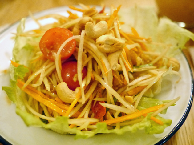 An increasing number of Thai restaurants now serve papaya salad and Rosa’s version, while not perfect, was pretty good. There wasn’t much in the way of the promised long beans, but the firm julienned green papaya, beans sprouts and salty, chewy dried shrimp were complimented well by the thin, lightly spicy, zesty, tangy, fishy sauce.