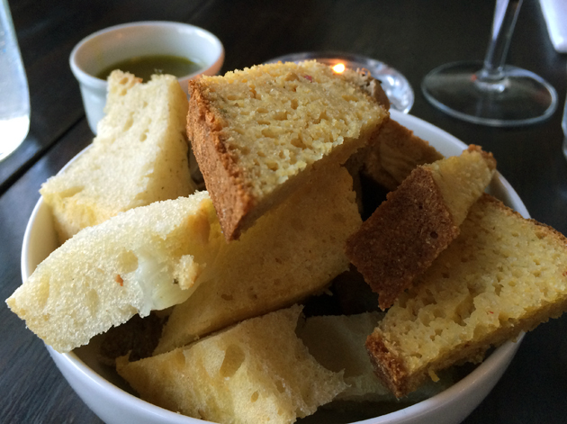 It’s easy to overlook the free bread basket for the table, but that would mean missing out on some delicious carbs. Some slices tasted of fennel, while others were walnutty and others dotted with chunks of sweet, caramelised onions. Vicious Alabaster and I fought over every last crumb.
