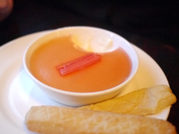 Vicious Alabaster had never tried posset before and liked its moderately thick, creamy consistency. It was mildly zesty, but it was overwhelmed both in volume and flavour by the tart rhubarb jelly layered on top.