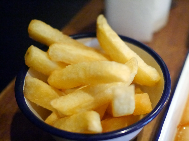 If you prefer your vegetables as brown and unhealthy as possible, then there’s the chips. These are proper chips too – thick cut slices of whole potato with the crispiest texture this side of Hawksmoor’s triple-cooked chips.