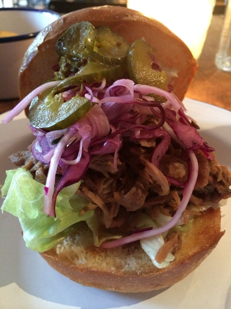 Even more disappointing was the pulled pork. Served sauceless, it still somehow managed to be excessively, mouth-pursingly salty. It also lacked the firm bite and caramelised exterior I was expecting, but it was at least consistently tender. It’s served in a sweet brioche bun, but attempting to actually eat it as a sandwich proved to be a messy affair with meat juices, pickled vegetables and meat flecks spewing onto the plate.