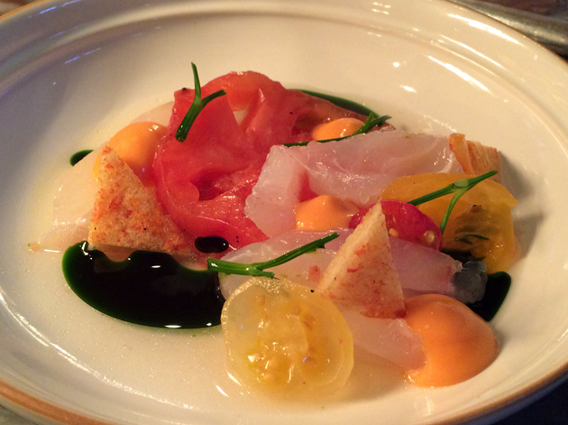 None of the snacks really set my world alight, but things started turning around with the starters. The Euro Hedgie’s cod starter consisted of bite-sized chunks of tender, just-rare fish served in a thin herby sauce alongside tomatoes bursting with rich, complex umaminess.