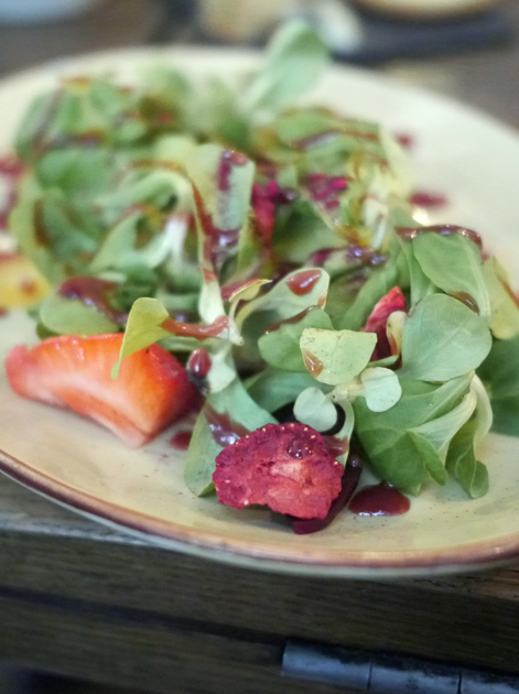 The cubed potatoes that made up the patatas bravas were nothing to write home about and the alleged spicy sauce drooled on top had as much heat as an Arctic gust of wind. More interesting, but no more successful, was the salad of avocado, apples, beetroot and strawberries, but the latter far outnumbered the other fruits and vegetables here. The muted sweetness of the strawberries and the sparse scattering of slightly sweeter than usual beetroot and mildly creamy avocado were tolerably amusing on their own, but the subdued flavours didn’t really gel together to form a coherent whole.