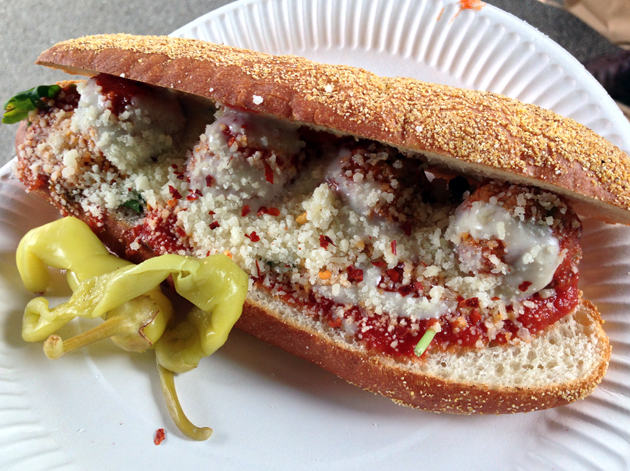 Slightly tough bread and insipid chilli flakes were the only complaints I had about the meatball sub. The moderately coarse, herby meatballs were made even better by a lightly musky, earthy provolone cheese.