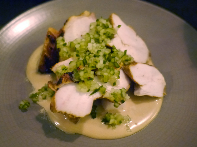 chargrilled chicken and cucumber in peanut sauce at tredwells