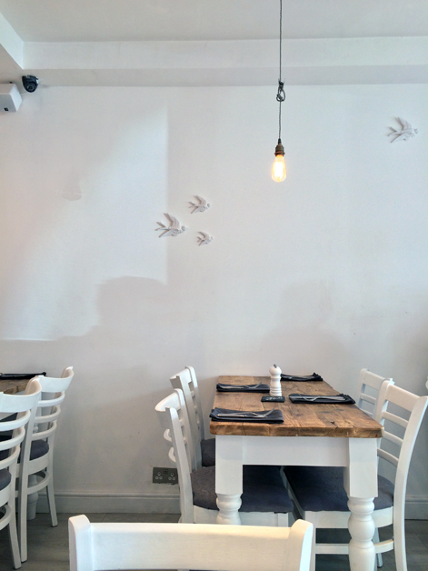 While the basement is mostly dominated by comfortable semi-communal tables, it can be quite chilly which is pleasant in summer at least. The ground floor is a different matter. The tables there have such narrow legs that it’s essentially impossible to sit comfortably with both legs underneath the table. The ground floor tables are all packed together quite closely which, combined with the noise created by the crowds of professional bullshitters, er I mean PR and advertising people, from the Saatchi and Saatchi offices across the road, makes for an aurally uncomfortable experience. The odd table arrangements and unassuming decor combined with the sharply dressed staff and need for reservations creates an atmosphere that’s not quite casual yet not quite formal either.