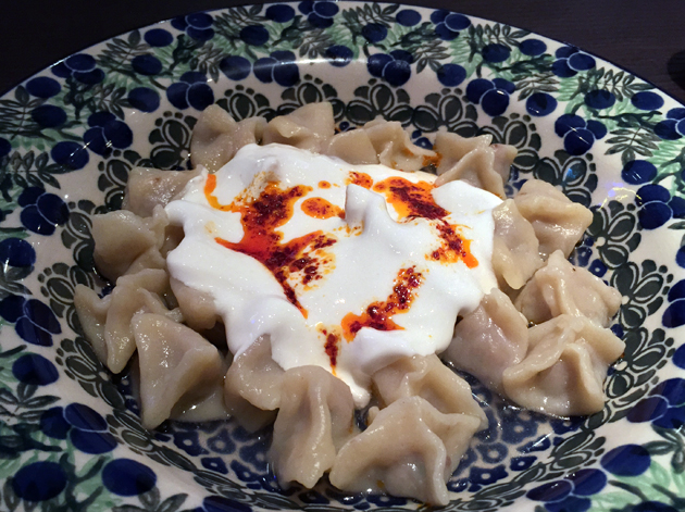 Manti are tiny little dumplings. Babji’s versions were steamed, resulting in soft, supple skins. Inside was a meaty, earthy hit of minced lamb that went down well with the thin, mildly creamy yoghurt and moderately punchy chilli sauce spooned on top of the dumplings.