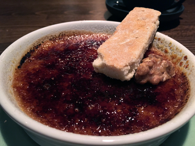 The sugary crust of the walnut and miso creme brûlée was almost too crunchy and sweet, nearly sticking to my teeth as I crunched my way through it. The odd walnut and miso cream underneath tasted somewhat like caramelised bananas. It was pleasing enough, but far more nuttiness came from the candied walnut half. The pine nut shortbread was evocatively flavoured, but it tended to overpower the rest of the dessert. An odd, disjointed effort.