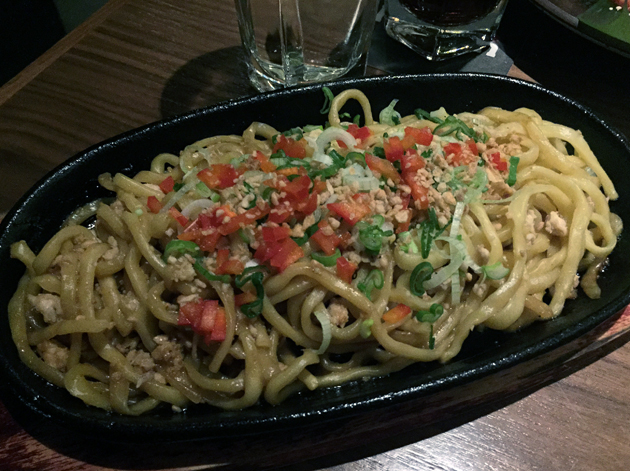 Garlic-fried udon-style noodles were indeed suitably garlicky, although I couldn’t tell if the bitty flecks dotted throughout were pork, seitan or a mixture of the two.