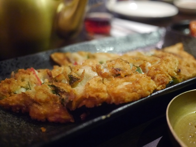 Happy Buddha was much more enamoured with the par jeon. This savoury pancake, sliced into pieces easily graspable with your chopsticks, was soft and fluffy yet just stiff enough not to be floppy. Free from excess oil, it was stuffed full of firm squid and crisp spring onions. Splendid.