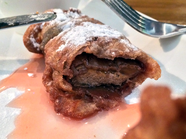 I’ve been fascinated by deep fried Mars bars ever since I first heard of them years ago. Even though Mars bars are one of the nastiest of all the cheap vegetable fat-based chocolates, the deep fried variant has nonetheless inexplicably haunted my imagination. After having finally tried it at The Thirsty Bear, the infatuation is over. Much like finally snagging a date with your teenage crush only to discover that they’re a vacuous Nazi who hates kittens, the deep-fried Mars bar here was a bitter disappointment. A sickly sweet concoction that was both too oily and excessively viscous to the point that it stuck to my teeth, it was so repulsive that I couldn’t finish it.