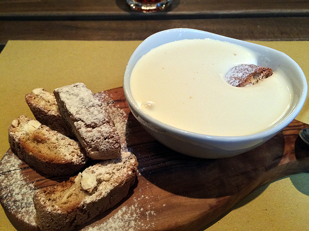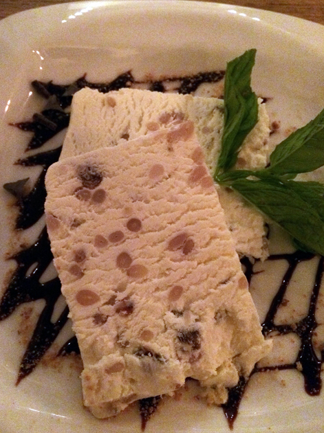 The semifreddo was surprisingly heavy despite its initial lightness and was with dotted sweet, tangy raisins, but the dusting of pine nuts and smearing of chocolate on the plate were both inconsequential. Even less successful was the strawberry tart. A sickly and cloying jam in an unremarkable pastry crust proved to a real chore to chow down – when the dabs of whipped cream are the only thing that break up the monotony, then something has truly gone wrong. At least it wasn’t as sorrowful as the oddly-named chocolate salame. Essentially a take on the Swiss chocolate roll, it somehow managed to have even less charm than that 70s throwback. The combination of crushed butter cookies and cocoa glommed together into chunky clumps of dry, brown-coloured ennui. I’ve had more fun scraping off the baked-on bits of cake from the bottom of a cake tin.