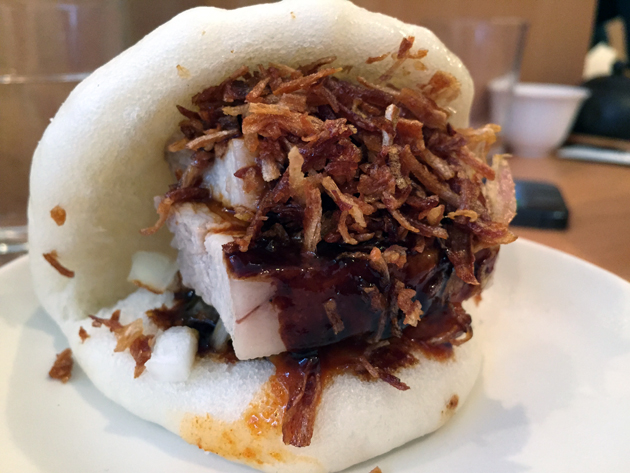 It would be foolish to ignore the other, non-bun dishes. The beef soup resembles both a French beef consommé and the broth from a bowl of Taiwanese beef noodle soup, a resemblance reinforced by the turnip-like chunks of braised daikon bobbing about. It was a lip-smackingly moreish bowl of beefy refreshment.