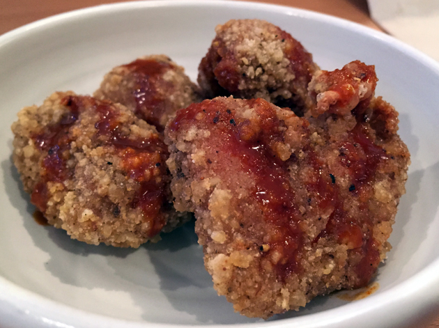 The fried chicken greatly resembled its street stall incarnation. The moist whole chunks of chicken were covered in a light, crispy batter than had occasional hints of malt and ginger. The meaty nuggets were perfectly good, but they could’ve been even better with more of those flavoursome hints.