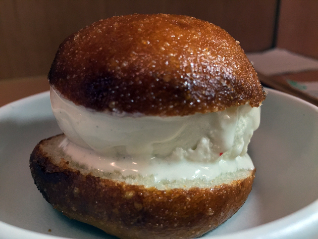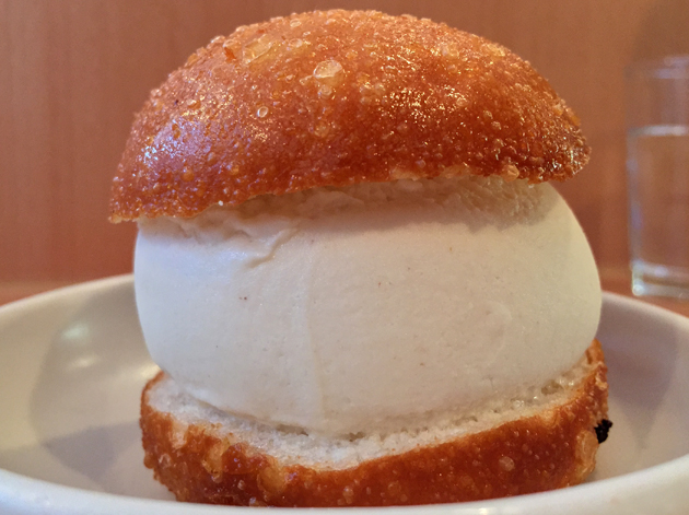 There’s only one dessert on the menu and it’s nothing if not interesting – Horlicks flavoured ice cream sandwiched between two halves of a deep-fried bao. Horlicks in a dessert isn’t as crazy as it might first appear – it’s very popular in Hong Kong and other parts of Southeast Asia. The Horlicky flavour of the ice cream was obscured though by the doughnut-like fried bao, although the bao was at least very soft, fluffy and free from any oiliness. The ice cream could also do with more resting time out of the freezer as its bracing, arctic coldness was painful on first bite. There’s the basis of a good dessert here, but it needs more finesse to truly soar. One useful tip: it’s best to squeeze the two bun halves together, compressing the ice cream. This helps prevent leaking ice cream from spewing everywhere.