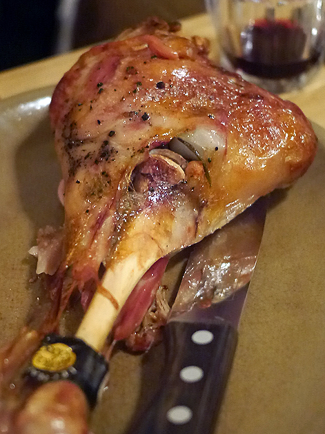 The taut, lightly crispy skin of the leg of lamb reminded me of the somewhat similarly textured skin on Cantonese roast duck. The moist, modestly milky meat underneath was rich in the earthiness missing from the lamb chops.
