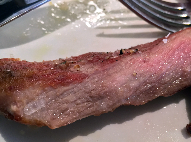 The salad of orange, artichokes and raw cod could’ve been an apt pairing for the pork ribs, although it arrived far in advance of the suckling pig. In any case, it’s easily good enough to stand on its own. The firm, springy hunks of fish were dressed in a lightly grassy olive oil. Although the artichokes added little, the zestiness of the orange segments helped counterbalance the relative richness of the olive oil.