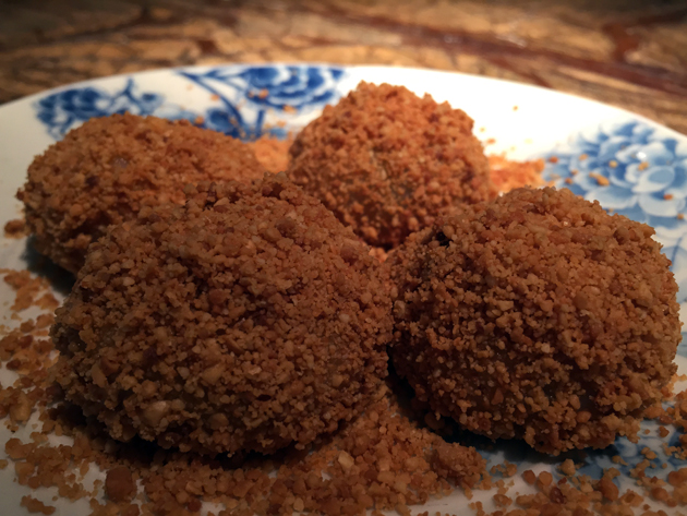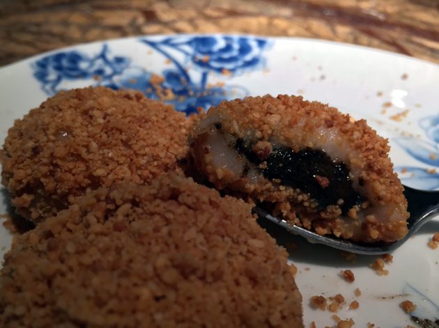 Most people will probably be put-off by the black sesame dumplings purely because of their appearance. It’s certainly an alien dessert by most Western standards, but reasonably warming and comforting if you approach it with an open mind. The coarse and lightly crunchy dusting of crushed peanuts contrasts neatly with the chewy, pillowy soft layer of rice flour skin just underneath. The warm, black sesame seed-flavoured semi-liquid filling at the centre of the dumpling was disappointingly bland though.