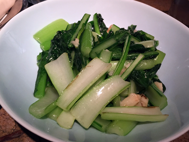 A variety of Chinese greens are available, depending on what’s in season. Crisp choi sum is always a good choice, although I had to toss (stop sniggering in the back) the greens around to distribute the moreishly tasty garlic sauce around more evenly. Otherwise you’d have to bite into the extant clove segments for your garlicky hits.