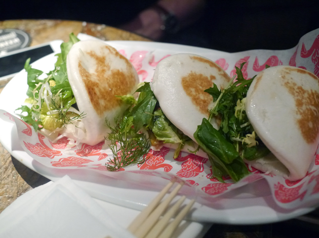 Although the fluffy rice flour bao was filled with actual, identifiable pieces of pork – some with the rinds still attached – rather than a mushy mince, they were a little too sweet for my liking.