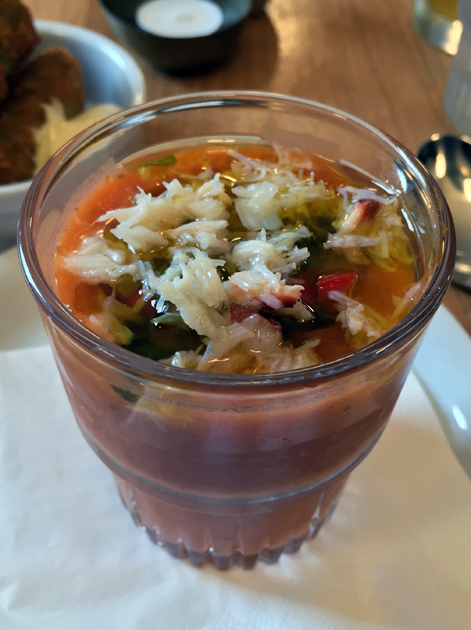 Oldroyd has occasional specials, such as gazpacho topped with crab meat. The bland crustacean flakes were inconsequential though, so it was fortunate that the chilled soup was more than good enough in its own right. Cool, crisp, sharp and laced with a little oil, it proved to be very refreshing.