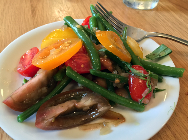 Heritage tomatoes now appear so often on London restaurant menus, that it’s increasingly uncommon to see ‘standard’ tomatoes instead. There are good reasons for their proliferation though – the varied hued fruits used in the tomato and green bean salad ranged from boldly umami to sharp and sweet. The runner beans were firm, while the béarnaise reduction proved to be moreishly addictive with strong hits of fennel-like flavour.