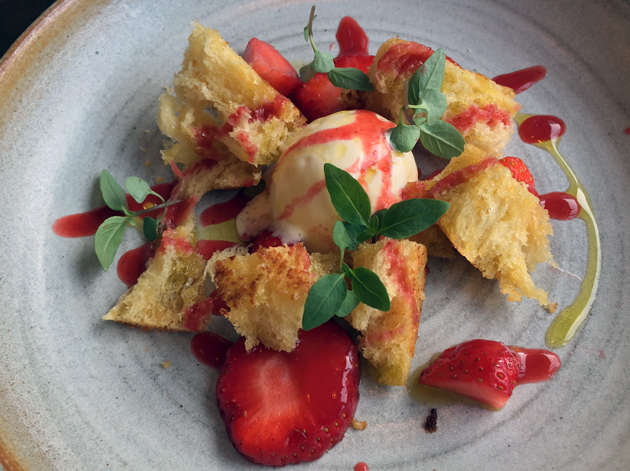 Panzanella is a Tuscan bread salad, but the panzanella on this occasion was a sweet dessert that paid homage to its namesake with its torn chunks of brioche. Although advertised as fennel brioche, the fluffy tufts of carbohydrates tasted more of sweet olive oil. The very ripe, exceedingly sweet strawberries were complimented neatly by the licorice-esque Thai basil. The ice cream was neutrally flavoured, but it was very creamy and smooth with no large, annoyingly crunchy ice crystals. Each individual element – brioche, fruit and ice cream – were all very pleasing, especially the brioche, but didn’t quite come together as a cohesive whole.