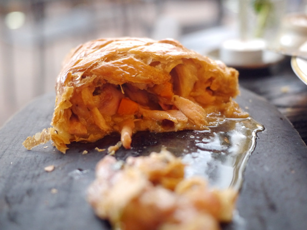 The final part of the rabbit roast looked like an afterthought at first, but turned out to be the best bit of all. Although called a turnover, this pie looked more like a side-crimped Cornish pasty. The buttery, gently flaky pastry had just the right amount of firmness and consistency – neither too soft nor too hard and crusty. The rabbit meat filling was everything the confit leg was not – fatty, unctuous, juicy and soul soothingly satisfying. This warming rabbit pie is more than good to stand on its own as a separate dish.