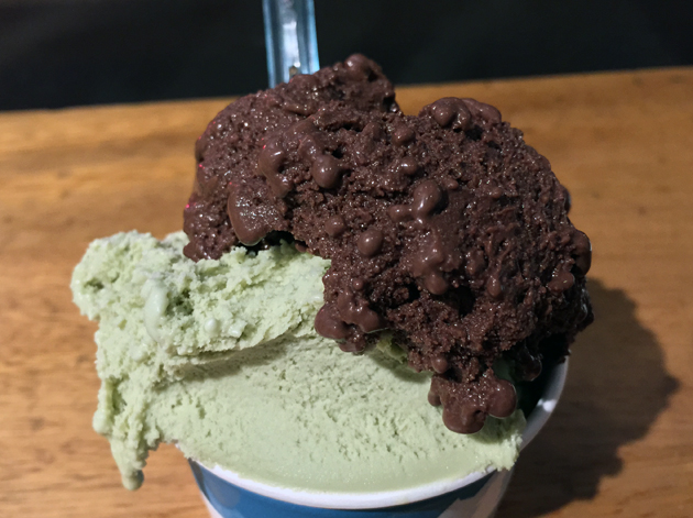 Gelupo maintains a surprisingly consistent level of pleasing elasticity across its various gelato flavours, plus an accomplished level of creaminess and pleasing lack of crunchy ice crystals. The unmistakable pistachio and coconut flavours really hit the spot, with the pistachio a persistent highlight – a subtle but wonderfully enjoyable nutty edge manages to convey and evoke the crunch of shell and the peeling of tight nut skin.