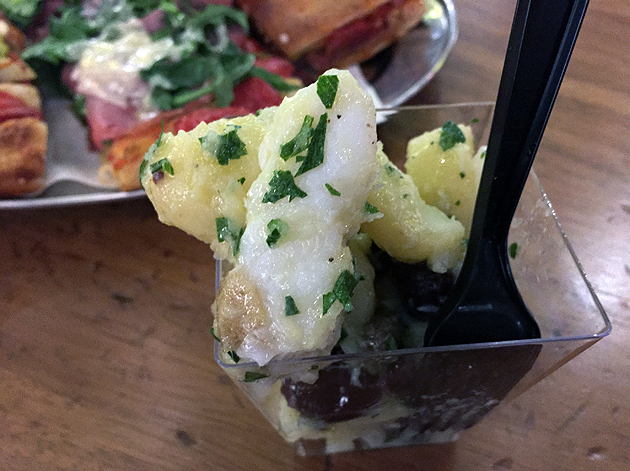 Fish was once again in short supply in the salt cod and potato salad. There was just one piece of cod in my serving, but it was at least dense and lightly chewy. The tender potatoes were zesty and lightly herby which would help counterbalance the relative heaviness of the cod if there was anything more than a single chunk.
