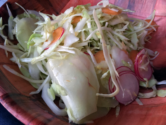 The cabbage salad was essentially coleslaw but without the mayo. The firm slices of cabbage included glossy cellophane-like sheets which were refreshing enough.