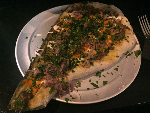 The lamb offal pide topped this delightful bread with a heap of unidentifiable meat that wasn’t improved by the so-so spicy sauce and sour cream. Still, the tart and sharp sauerkraut was a saving grace.
