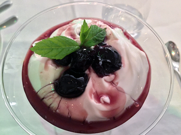 Another needless gloss is the ‘yoghurt martini’ which is just Greek yoghurt with fruit served in a martini glass for no apparent reason. The light and mildly creamy yoghurt was, on my visit, topped with an uninspiring selection of cherries.