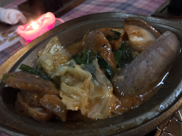beef pork belly sausage and cabbage at minshuku tsugizakura