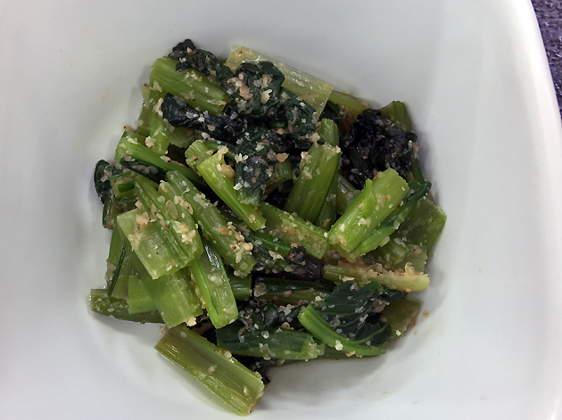 Despite British government drives to increase vegetable consumption, Anglo breakfasts remain steadfastly green-free zones. That’s an oddity and something of a shame, as Japanese breakfasts show that greens can work well first thing in the morning. Whether they were sweet or lightly bitter, the pleasing greens here were crisp rather than soft and floppy.