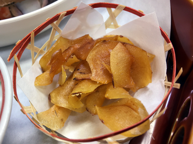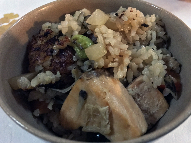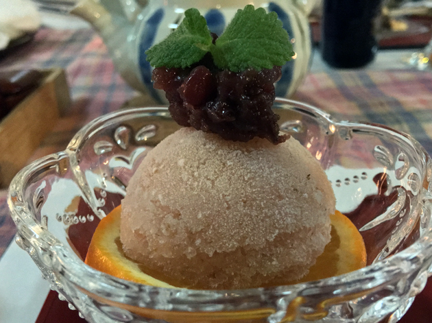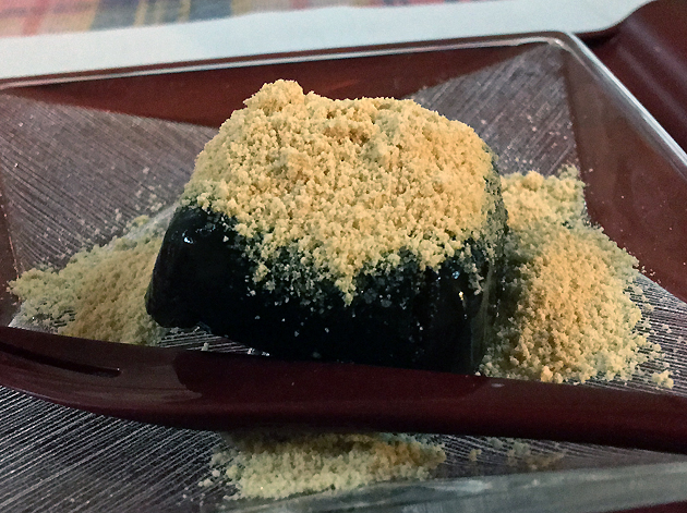 The warabimochi wasn’t quite as accomplished the version of this dessert at Kyoto’s Sagatoufuine, but its squidgy texture and nuttiness, emphasized by the dusting of roasted soybean flour, still made for a fine finishing dish.