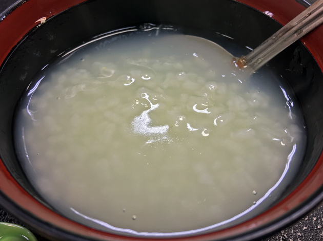 I haven’t liked congee in the past, but this Japanese sojourn has been slowly changing my mind and opening it up to the myriad forms of rice porridge/jook that are available. Although loose and somewhat watery, the bowlful here was dotted with leaves of umami kelp, a soothing flavour profile followed up by another bowlful of refreshing and palate-cleansing kelp-based broth.
