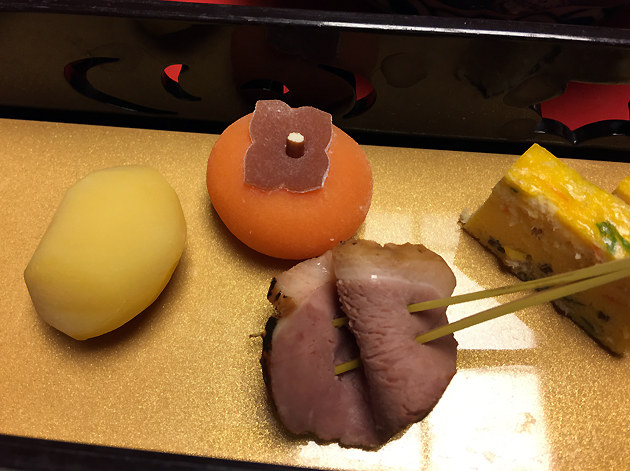 prawn nigiri fried fish gingko nut and fruit at minshuku tsugizakura