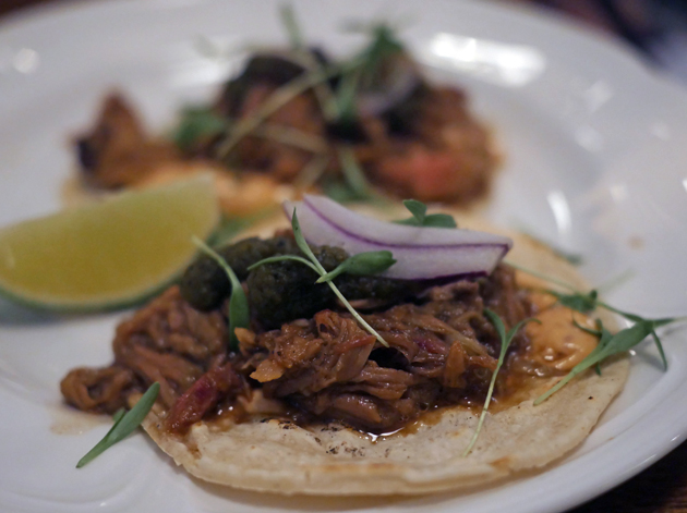 Similarly so-so strands of beef made an appearance in the beef tacos dressed with a chipotle aioli that may, at some point, have been in the same room as some chipotle and garlic. The tortillas weren’t inedibly bad, but this impersonation of proper maize tortillas was unimpressive in its grey and flaccid lack of taste and fluffiness.